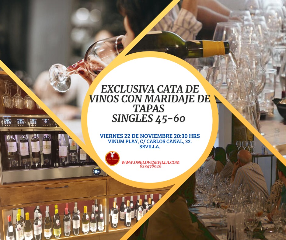 One Love Matchmakers te invita a una exclusiva cata de vinos con maridaje en Vinum Play, Sevilla, para singles de 45 a 60 años.